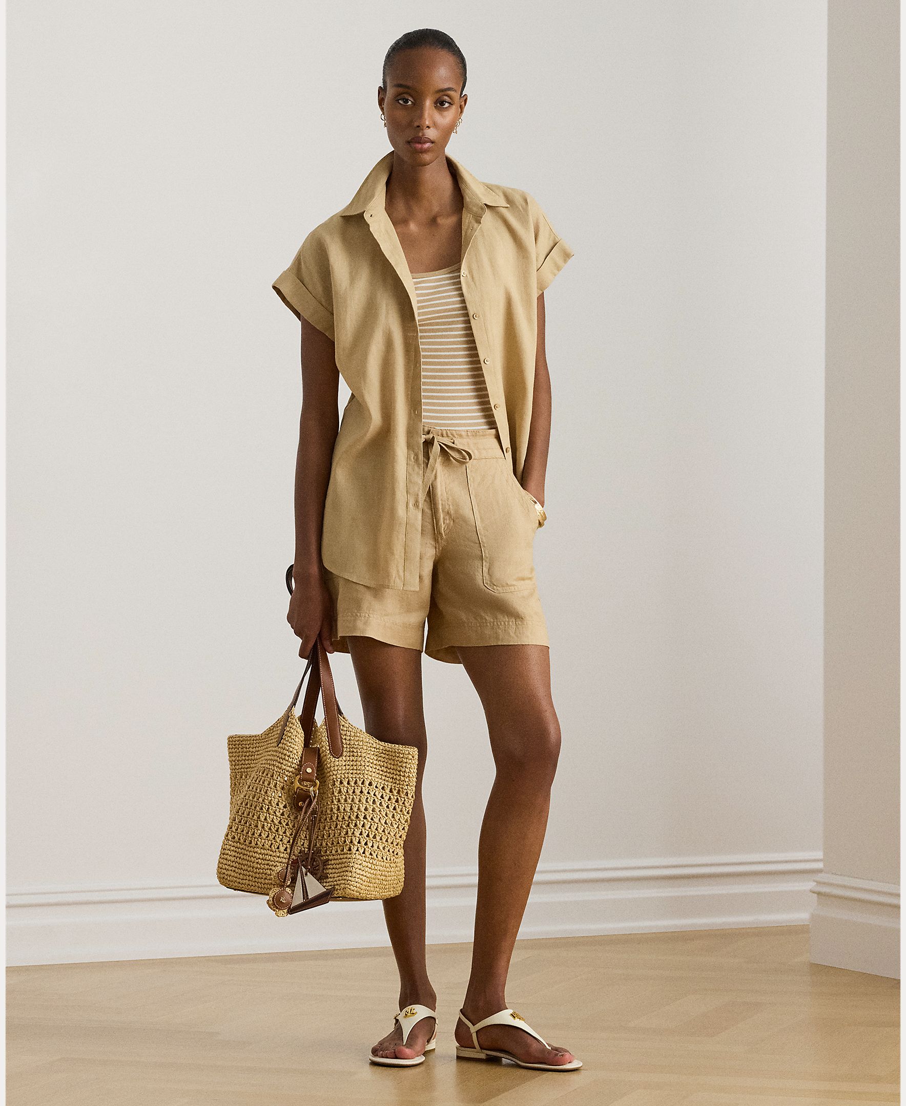 pantalon corto lino mujer